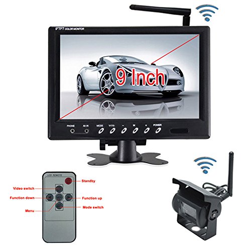 -. Title : Ehotchpotch Vehicle Backup Camera & Rearview Monitor, 9'' TFT LCD Car Rear View Mirror 2.4GHz Build-in Wireless, Parking Assistance System, Night Vision, Waterproof, Wide Viewing