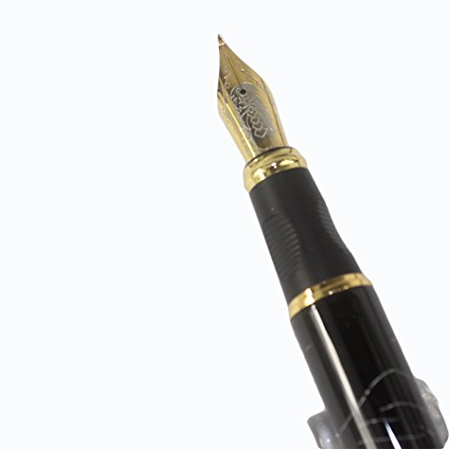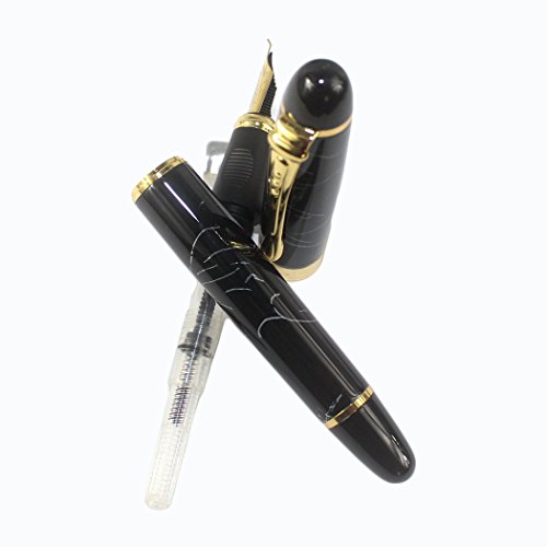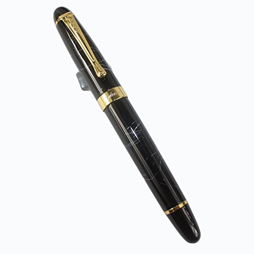 -. Title : Jinhao Calligraphy Fountain Pen Black with White Firework and Golden Clip Art nib