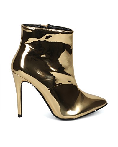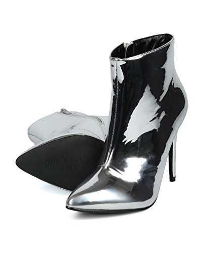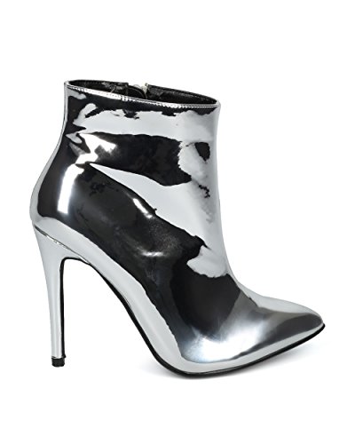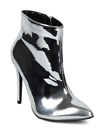 (Alrisco)/Women's/Boots/DIRECT FROM USA/Alrisco Women Mirror Metallic Pointy Toe Stiletto Ankle Bootie - HG20 by Liliana Collection