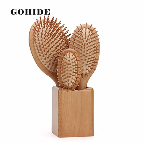Product Name:A Gohide Natural Wooden Comb Set = 3 Combs 1 Holder For Family Using Hair Care and Beauty Tool In Natural Wooden Hair Comb Brush Oval Shape For Women Men Child Adult Professional Travel Paddle Hair Brush Comb(Ball Teeth Top)
