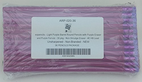 36 High quality woodcased HB No. 2 Lead - Light Purple barrel with Purple Eraser and Purple Ferrule - Round graphite pencils – Non smear eraser. **Please read all product bullets and scroll down to Product description**