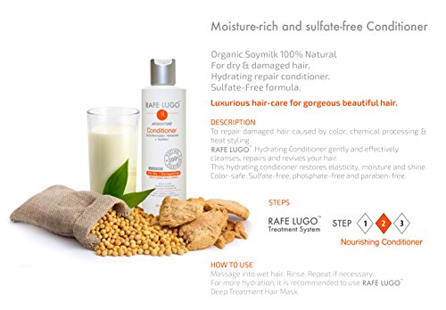 Studio : Rafe Lugo Publisher : Rafe Lugo Binding : Health and Beauty Product Description Luxurious hair-care for gorgeous beautiful hair to repair damaged hair caused by color, chemical processing heat styling. Rafe Lugo hydrating conditioner gently and effectively cleanses, repairs and revives your hair. This hydrating conditioner restore elasticity, moisture and shine. Color-safe. Sulfate-free, phosphate-free and paraben-free. 0