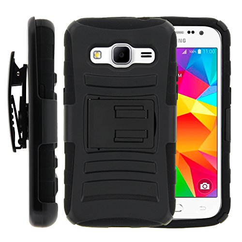 Design -- The case itself will fit snugly onto your phone, with all features of your phone still accessible, and funactionable. This hybrid Armor case comes in 2 layers; the interior is made up of silicone skin gel, while the exterior is made up of hard polycarbonate (PC) plastic. Built along the hard polycarbonate plastic is the kickstand, which, when not in use, can be pushed back into the case.