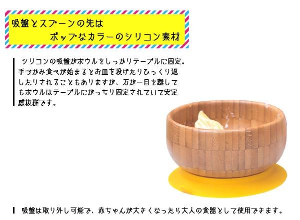 | 素材・材質 | ボウル・スプーン持ち手:竹集成材(食用ウレタン塗装)、吸盤・スプーン先端:シリコン |