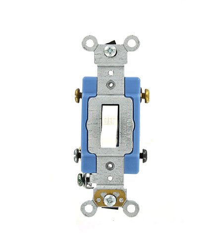 Leviton 1202-2W 15 Amp, 120/277 Volt, Toggle Double-Pole AC Quiet Switch, Extra Heavy Duty Grade, Self Grounding, Back and Side Wired, White