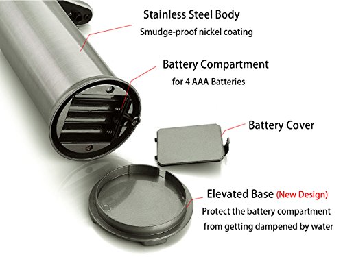 The body is made of stainless steel and coated with brushed nickel.The smudgeproof coating makes it easy to clean as simply need to wipe the surface with a damp cloth. The container is made of sturdy ABS plastic. Anti-leakage technology is adopted to avoid the liquid to corrode electronic components inside.