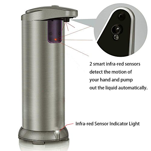 This automatic soap dispenser is driven by batteries. Equipped with 2 smart infra-red sensors it detects the motion of your hand and pump out the liquid automatically. As there is no need to touch the dispenser it protects your family from bacteria.