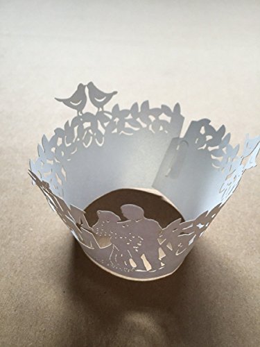 Sorive ® 120x White Color Mr & Mrs Filigree Paper Laser Cut Cupcake Wrappers Wedding Engagement Party Cake Stencil Cupcake Liners Fancy Flower Lace Wrapper Wraps Collars