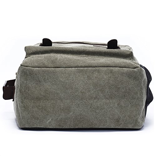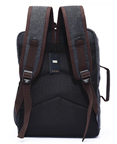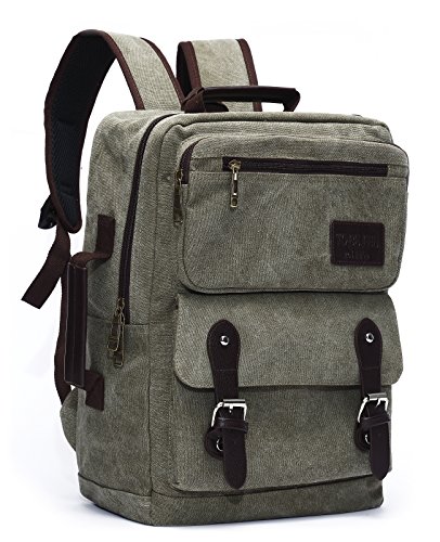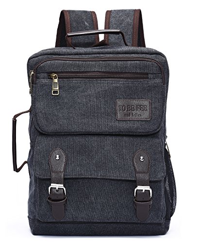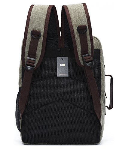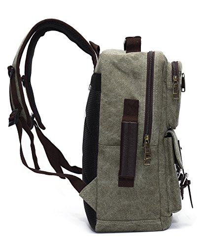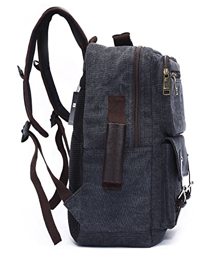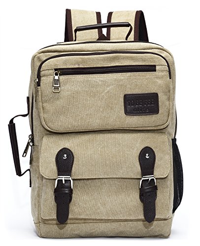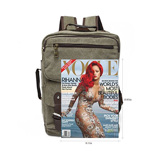 -. Feature : Great for school, travelling and camping. / Material: 100% cotton canvas backpack; Durable and fashionable; High quality hardware. / Economize your carrying effort, the main compartment with laptop sleeve comfortable fit 14.1'',15.6'' laptop bag. Three outside compartments with two side mesh pockets help your organizer your belongings more well and convenient / Features:carry-on, shoulder,backpack use for recreational, tourism, streets fashion / Overall dimension: Approx. 11.8"L x 16.14"H x 5.32" W (Medium capacity)