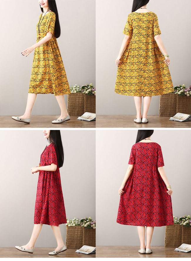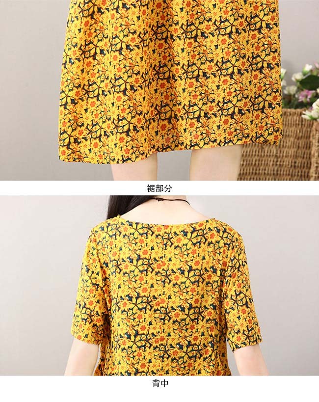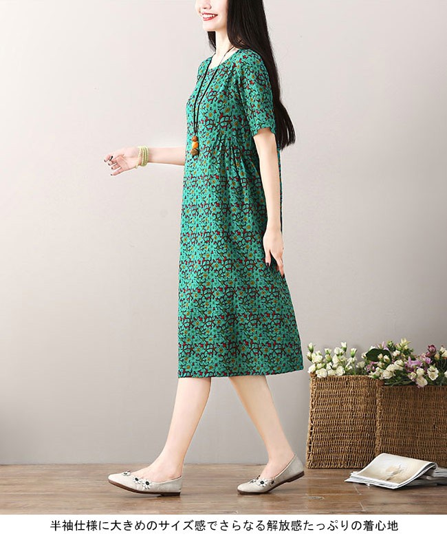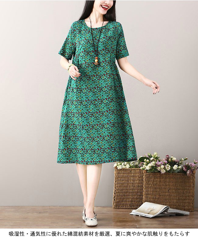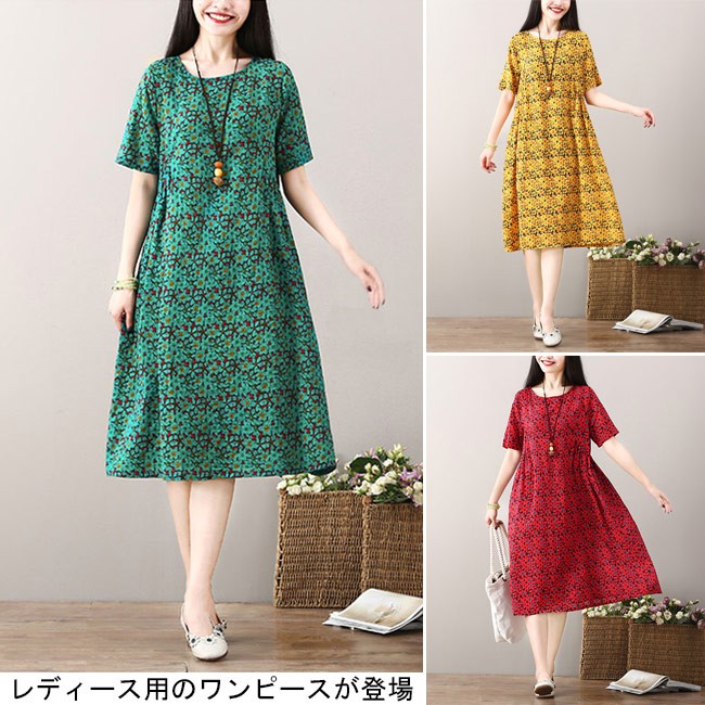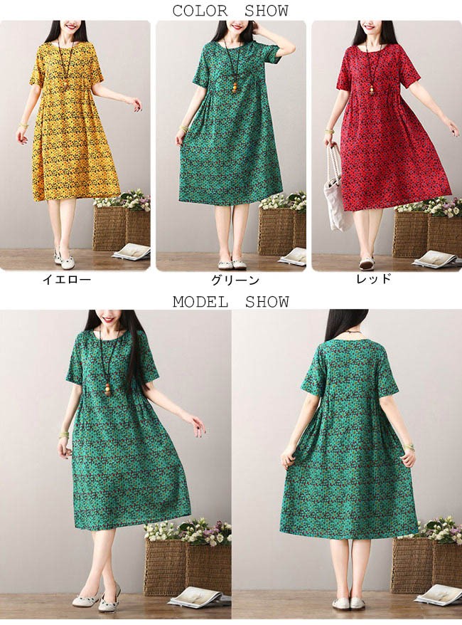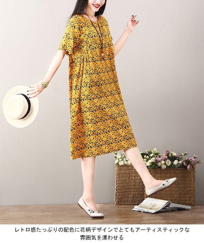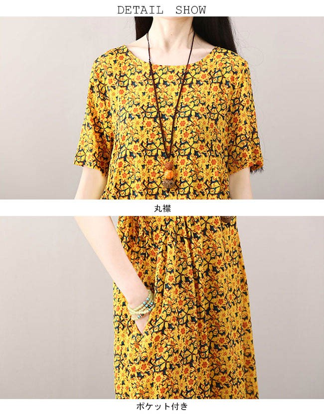 ワンピース ロング丈 レディース 半袖ワンピース ゆったり ポケット付き 女性用 夏物 薄手 丸襟 ロングワンピ 花柄 カジュアル レトロレディース用のワンピースが登場吸湿性・通気性に優れた綿混紡素材を厳選、夏に爽やかな肌触りをもたらす半袖仕様に大きめのサイズ感でさらなる解放感たっぷりの着心地ゆったりとしたAラインシルエットに丸襟仕様でカジュアル感を演出レトロ感たっぷりの配色に花柄デザインでとてもアーティスティックな雰囲気を漂わせるカラー:イエロー グリーン レッド素材 綿混紡サイズ(cm) M L XL 2XLM 総丈101 バスト96 肩幅38L 総丈102 バスト100 肩幅39XL 総丈103 バスト104 肩幅402XL 総丈104 バスト108 肩幅41ご注意:※サイズは平置きサイズです。素人採寸ですので、若干の誤差がございます、ご了承ください。