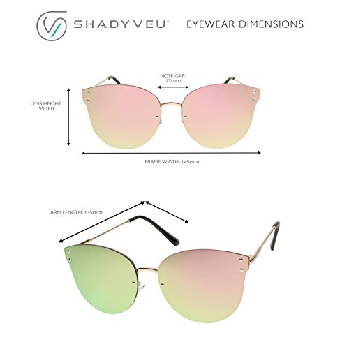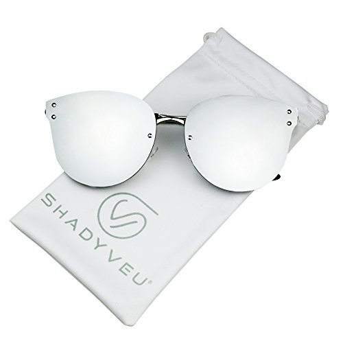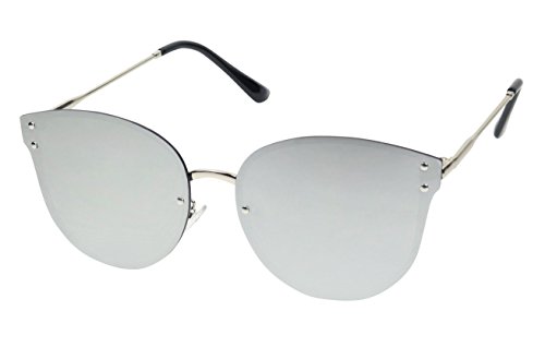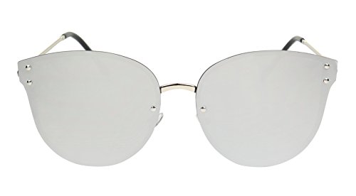 ShadyVEU - Cat Eye Oversized XL Mirror Reflective Flat Rimless Flash Sunglasses