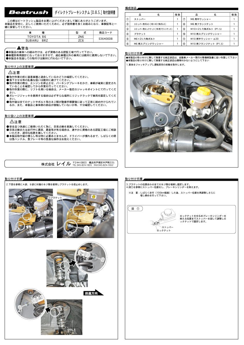 Beatrush (beat Rush) direct brake system DBS Toyota 86 [ZN6] Subaru BRZ [ZC6] [S36400DB]