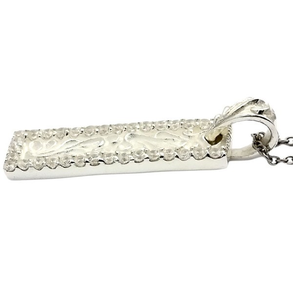 アラベスク模様とCZの煌めきRoyal Jokerラブアラベスクペンダント。プレートタイプにアラベスク模様が施され、周りをホワイトCZ(キュービックジルコニア)で囲んだ煌びやかなアイテムです。カラー違いでブラックCZもあるのでペアでもつけられます。本物のシルバーだから出せる質感が堪能できるアイテムです。専用のケースが無料で付属するので、プレゼント・ギフトにとってもオススメです。