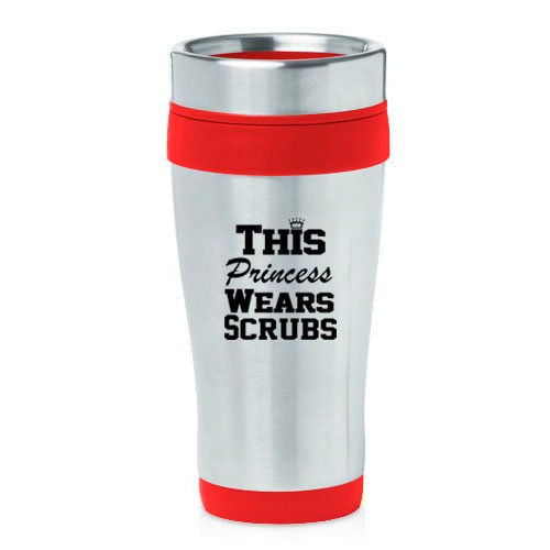 -. Title : 16oz Insulated Stainless Steel Travel Mug Medical Doctor Nurse This Princess Wears Scrubs