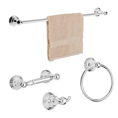Dynasty Hardware 2200-CM-4PC Muirfield Series Bathroom Hardware Set, Polished Chrome, 4-Piece Set, With 24" Towel Bar