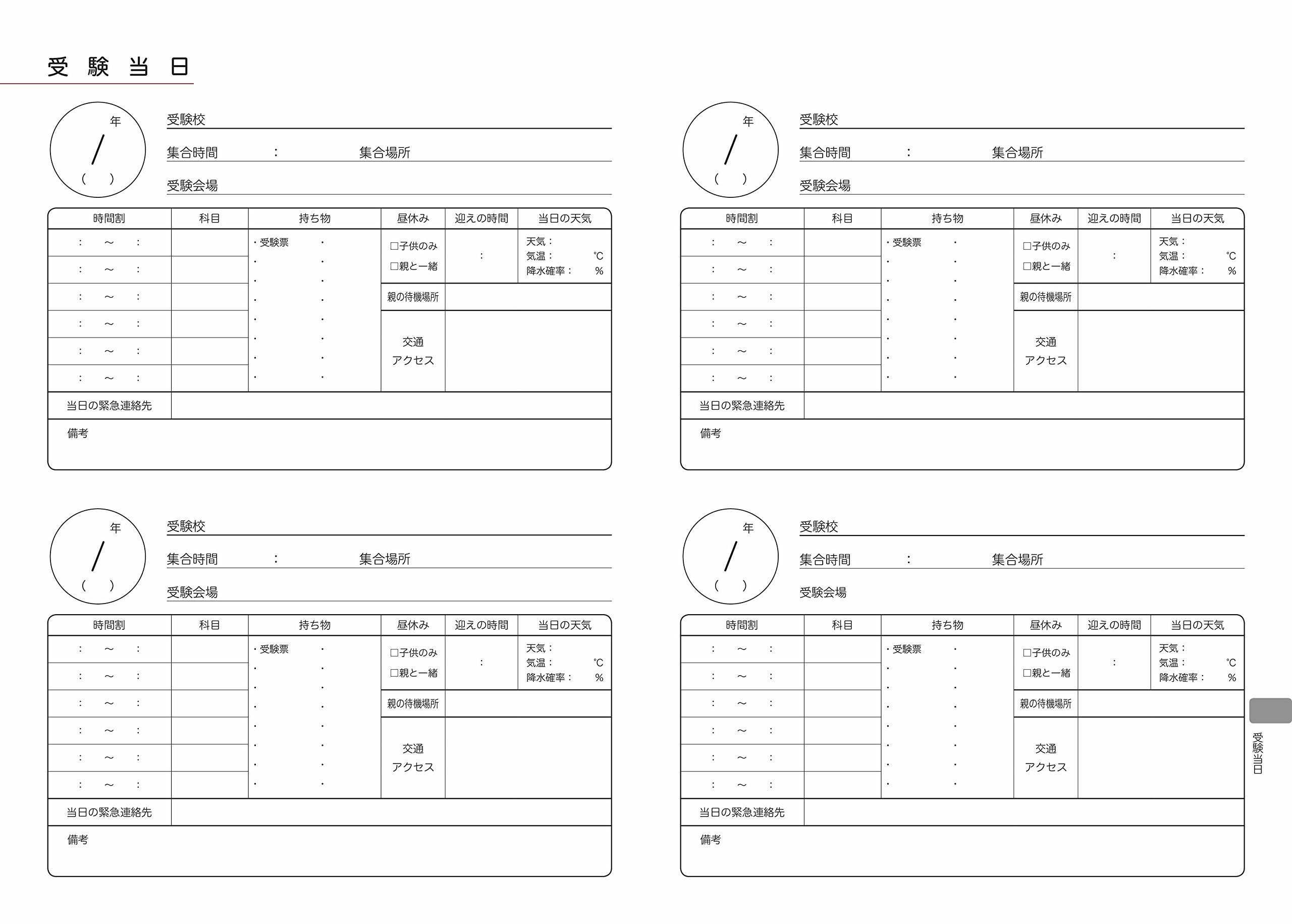 · I would like to finely write to the meeting place of the examination day, meeting time, examination venue, belongings, examination subject time