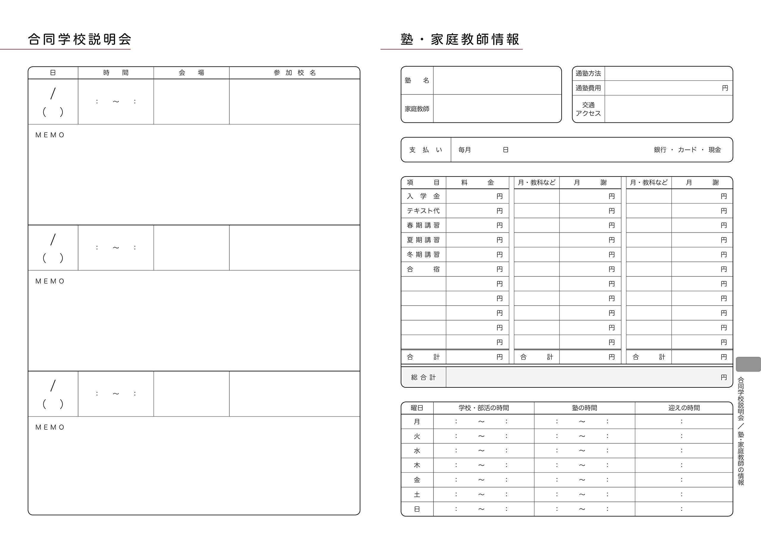 · Joint school briefing session / cram school · tutor information