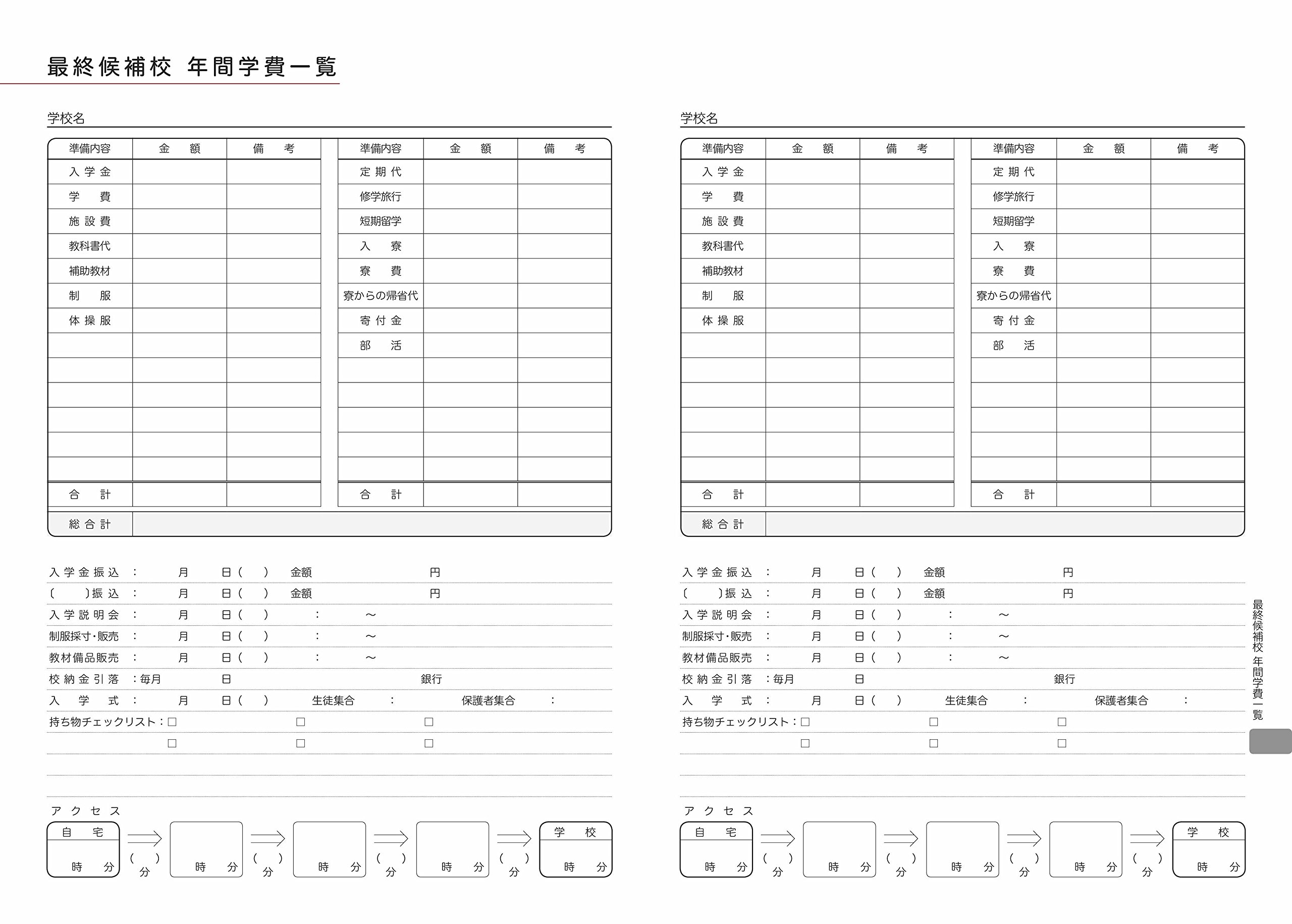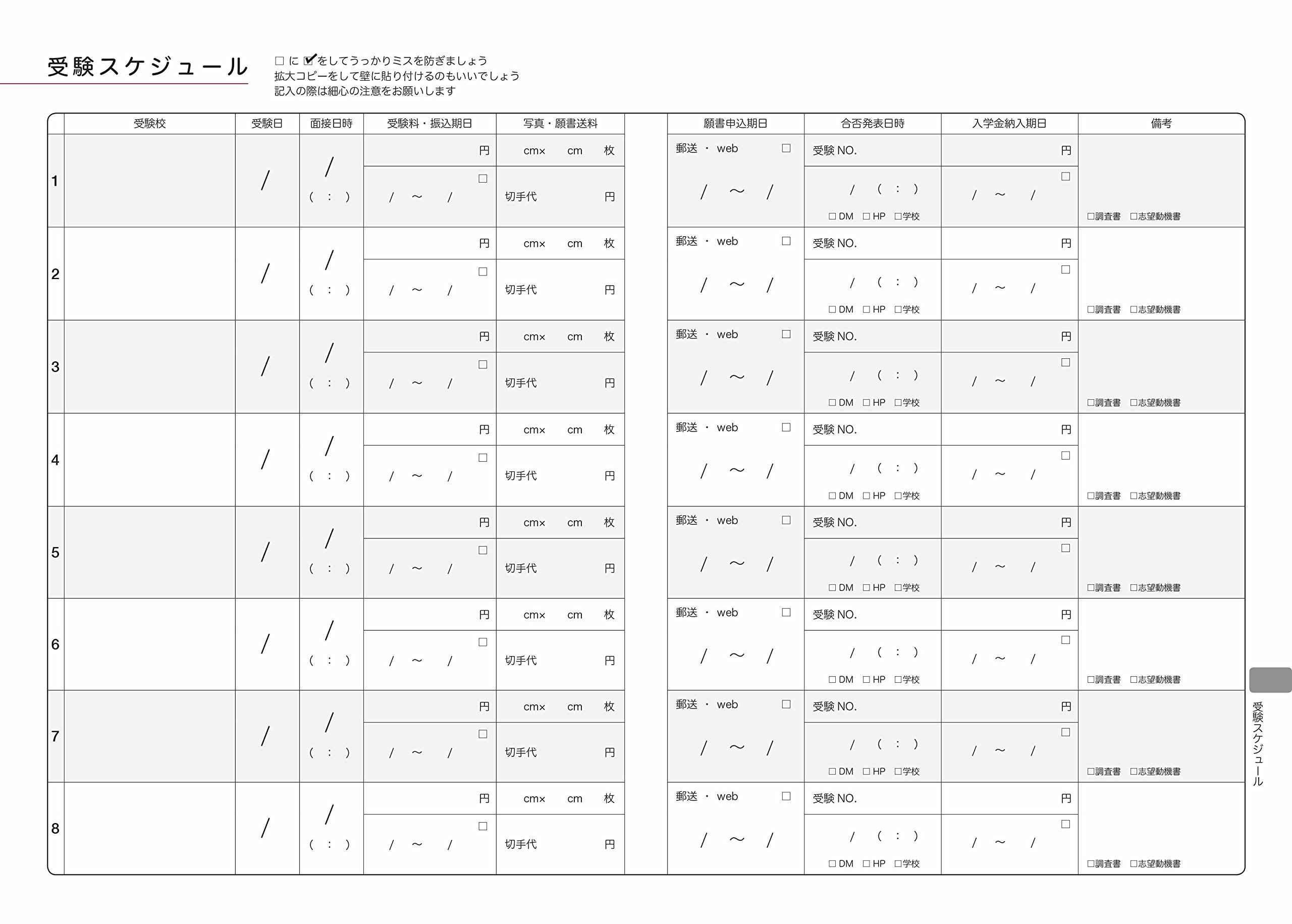 On the exam schedule page, it is possible to grasp the eight schools for one page, from parents' most concerned about "examination fee transfer" to "delivery of admission fee".