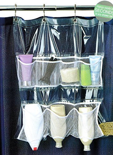 Bath Bliss Shower Curtain Mount Mesh Pocket Shower Caddy with 7 Pockets, Clear, 20x22