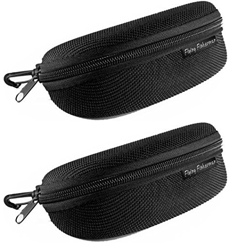Flying Fisherman Zipper Shell Sunglass Case, Belt Loop and Clip (Black)