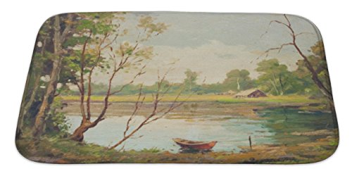 Gear New Oil Painting Showing Beautiful Forest Landscape with Boat Lake Bath Rug Mat No Slip Microfiber Memory Foam