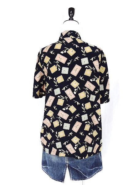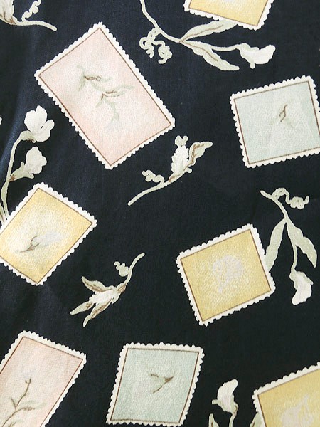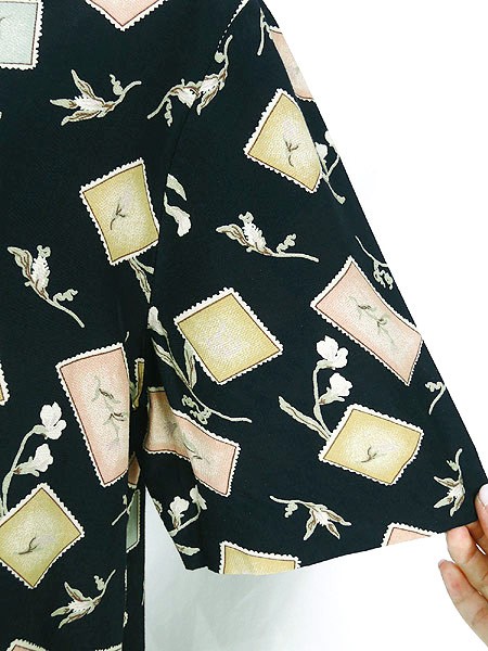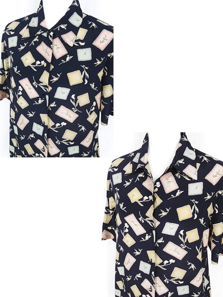 Ladies ブランド- カラー紺ベース メール便可 コンディション★★★ 素材- 表記サイズ- スタッフコメントタグカットの為、素材、サイズ不明。ポリ、レーヨンのような素材感です。 実寸サイズ 着丈 65 cm 身幅 49 cm 肩幅 40 cm 袖丈 25 cm ※ウエスト・ヒップ以外は平置き採寸