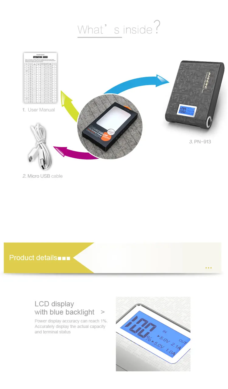 .u0026nbsp;1*u0026nbsp;Pineng 913 10000mAhu0026nbsp;Power Bank