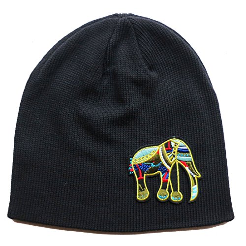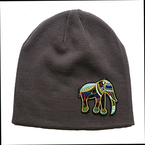 Product DescriptionWarm cotton beanie with a colorful elephant applique patch. Black or charcoal gray.0