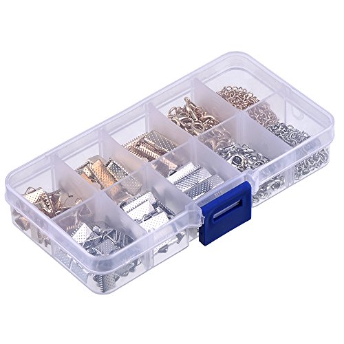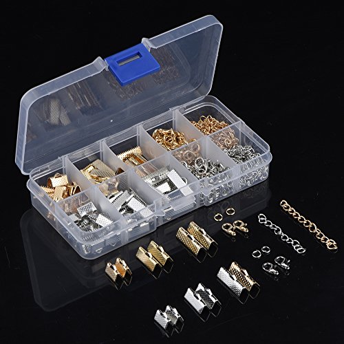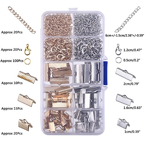 Outus Ribbon Bracelet Kit Bookmark Pinch Crimp Ends Lobster Clasps with Jump Rings and Chain Extenders, 370 Pieces (Multicolor A)