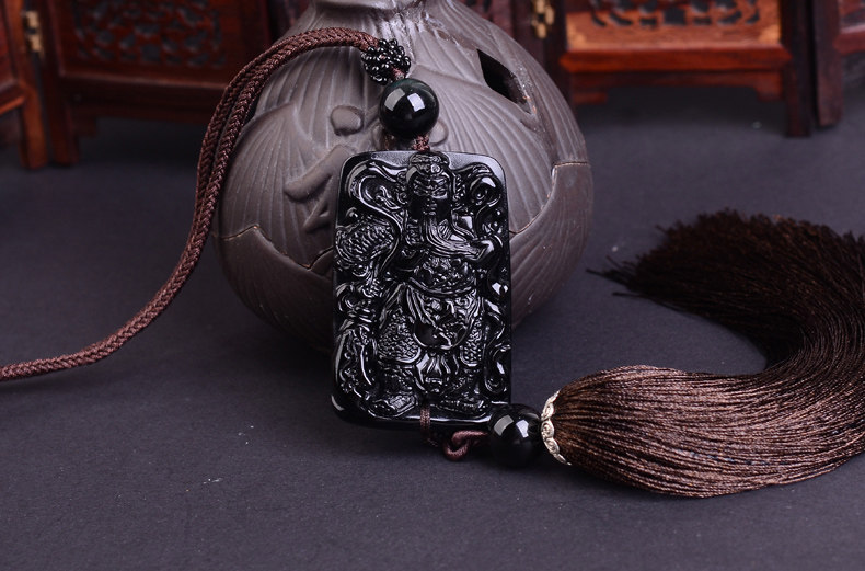 天然黑曜石关公汽车挂饰 水晶挂件关二爷关羽吉祥物车饰