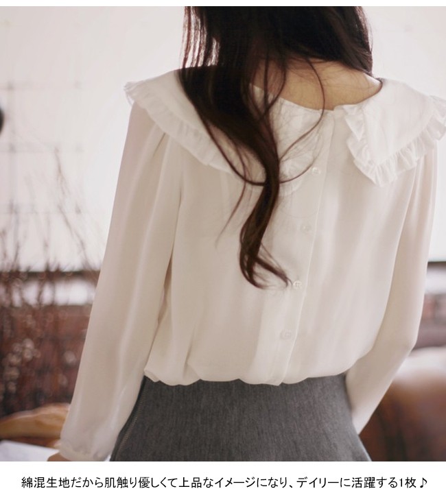 可愛らしい長袖シャツは、清潔感ある清楚なデザインが好印象、