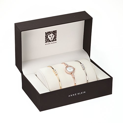 Anne Klein Womens AK/1690TRST Swarovski Crystal-Accented Rose Gold-Tone Bangle Watch and Bracelet S