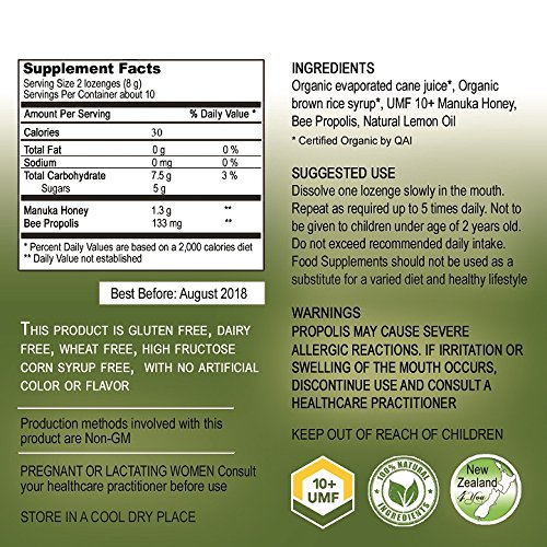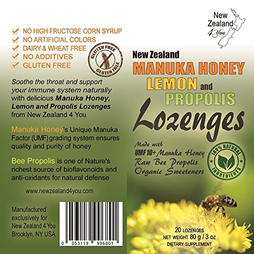 New Zealand 4 You Manuka Honey Lozenges with Lemon and Bee Propolis, 20 Count