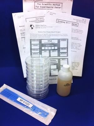 -. Feature : Enough materials to make 10 Agar Plates / 1 bottle of nutrient agar, 10 (plastic) petri dishes, 10 sterile loops / Microwave agar on low until melted, then pour into sterile petri dishes. / Science Fair Information, Scientific Method Information included / Detailed Instructions Included