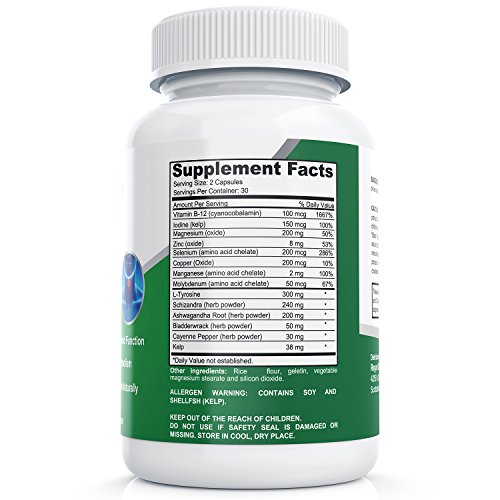 Made with 14 powerful herbal extras: Vitamin B-12, Iodine, Magensium, Zinc, Selenium, Copper, Manganese, Molybdenum, L-Tyrosine, Schizandra, Ashwagandha Root, Bladderwrack, Cayenne Pepper, Kelp