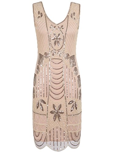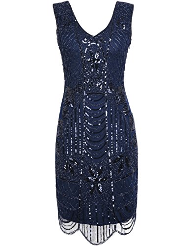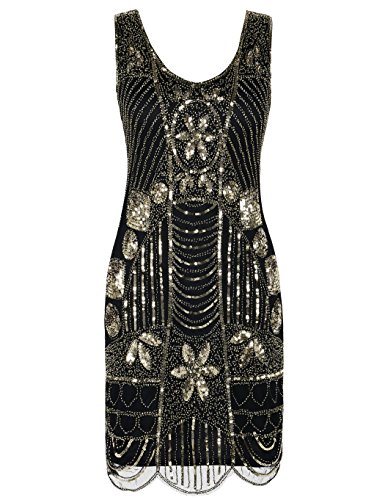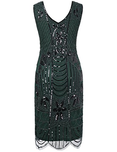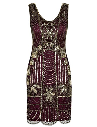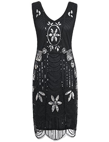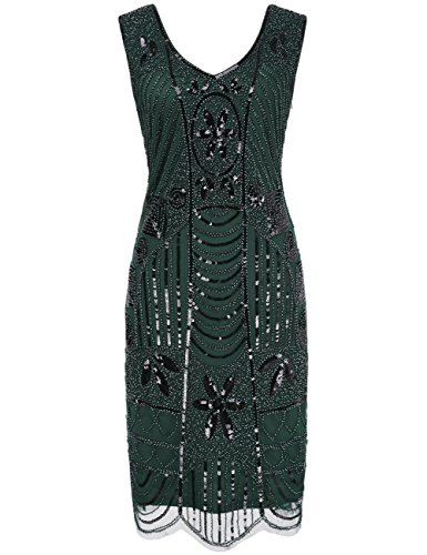 kayamiya Women's Retro 1920s Beaded Sequined Leaf Art Deco Gatsby Flapper Dress/b>
