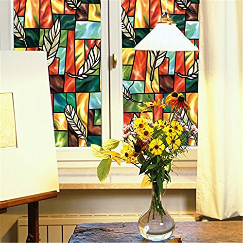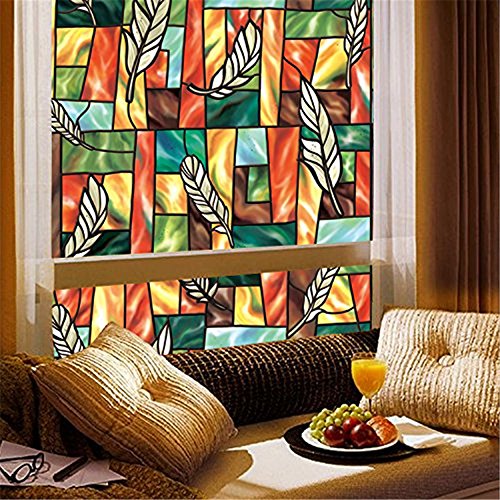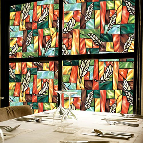 Fofon Privacy Window Film No Glue Frosted Static Self Adhesive Clings Stained Glass Painting Room Decorative Films (35.43 By 78.74 Inches)