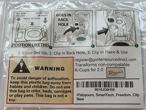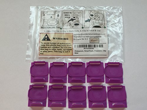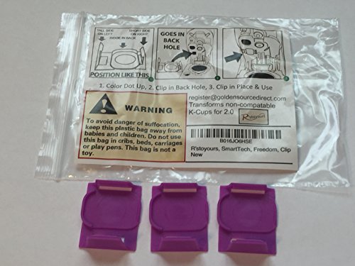 -. Brand : R'stoyours -. Color : Purple -. EAN : 0799207034344 -. Feature : 3 BPA Free Freedom (Smart or Clever) clips will override the Keurig 2.0 Lock Out Technology / Allows most Non approved K-Cup type pods to work. -SAVE MONEY- You do not have to buy expensive K-Cups anymore / Generally 2-3 uses per disposable freedom clip / 3 packs available while supplies last order soon before they are gone!!! We also offer 10 and 100 packs....check our variations for more savings!!! / Attention when brewing Carafes the freedom clip needs to be removed if you want the carafe brew option otherwise you will only have the K cup brew options -. Model : 5128125 -. MPN : 5128125 -. PartNumber : 5128125 -. ProductGroup : Kitchen -. ProductTypeName : KITCHEN -. Title : R'stoyours Freedom Clip AKA Smart Clip or Clever Clip Keurig Coffee Hack -. UPC : 799207034344