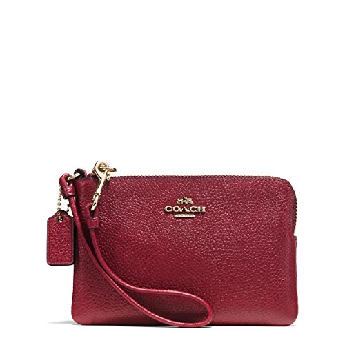 Binding : Accessory Product Description This modern update of the iconic Coach wristlet comes with two separate zippered compartments and a detachable wrist strap. Finished by hand in refined pebble leather, the design is accented with brightly polished hardware, including a heritage Horse and Carriage plaque. 0