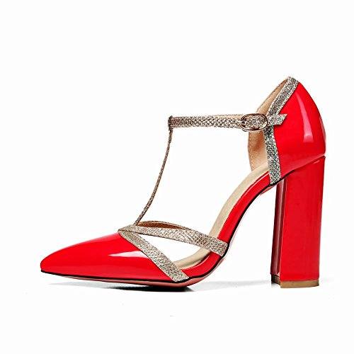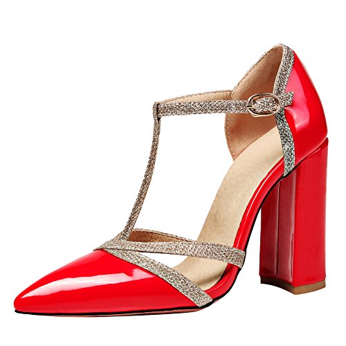 (Latasa)/Women's/Sandals/DIRECT FROM USA/Latasa Women's T-Strap Pointed-Toe Block High Heel Sandals