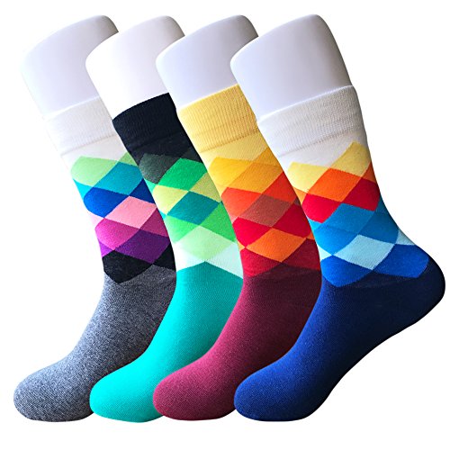 -. Title : Mens Color Dress Socks - Funny Colorful Rainbow Argyle Patterted High Fun Socks 4 Pack