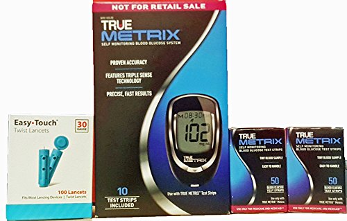 -. Binding : Health and Beauty -. Brand : The Medical Supplies Store -. EAN : 0865312000274 -. Feature : No Coding. Results as fast as 4 seconds. Tiny 0.5 microliter sample size / Alternate site testing. / Stores 500 results with time/date and has the capabilitiy of 7, 14, and 30-day averaging / Test Strips Proudly Made in the USA -. IsAdultProduct : 0 -. Label : Trivida -. Manufacturer : Trivida -. MPN : RE4H01-43 -. PackageQuantity : 1 -. PartNumber : RE4H01-43 -. ProductGroup : Health and Beauty -. ProductTypeName : HEALTH_PERSONAL_CARE -. Publisher : Trivida -. Studio : Trivida -. Title : True Metrix Meter System with 100 lancets and 100 test strips -. UPC : 865312000274