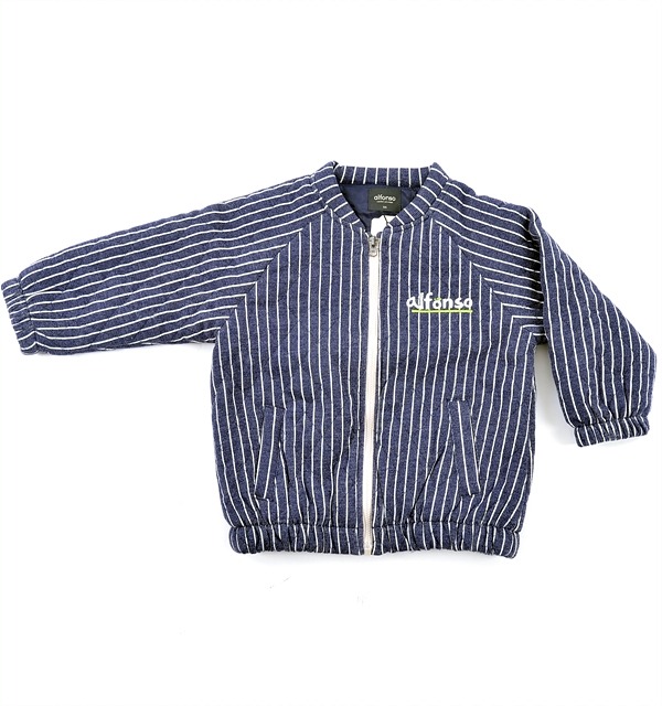 * 다이마루 미니쮸리 스트라이프 나염 소재. 그레이(GY계), 네이비(NY계) 2가지 컬러로 구성된 점퍼. * 엉덩이 살짝 덮는 기장. 소매끝, 밑단 고무밴드 작업으로 착용시 편안함. * 가슴 로고 자수 깔끔한 포인트. * 얇은 패딩작업 간절기에 적합함.*부드러운 다이마루 소재사용. 터치감이 부드럽고, 따뜻한 느낌 *얇은 패딩사용으로 간절기 날씨에 좋음. *가슴에 로고자수 칼라배색 포인트를 줌. *남아, 여아 모두 입을 수 있는 공용아이템.