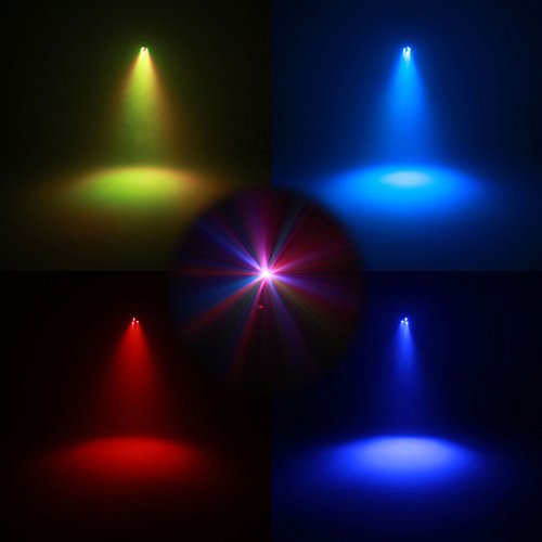 8 channel DMX-512 LED stage light, safe and reliable, high brightness,Master/Slave mix variable disco party lighting - Auto-play, static color, color changing, color fading, strobe light.