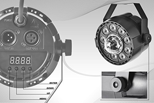 2 in 1 DJ par light that includes 9LED RGB Par Lighting, and 3LED rotating magic ball lighting effects.