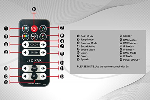 With more optional control methods,Auto, Sound-activated, DMX512, Master/Slave, IR remote.