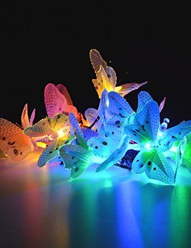DE-Spark 9.2ft 10 Colorful Fiber Optic Butterfly Solar String Lights LED Christmas Lamps for Garden Outdoor Patio Decor