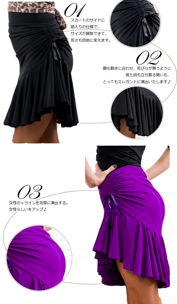 ★ご注意:こちらの商品はお客様がご入金後、メーカーから取り寄せさせて発送する予定です。ご入金からお届けまで約5-7日ほど時間がかかります。予めご理解いただきました上でご注文下さいますようお願いいたします。ダンス衣装 スカート ステージ衣装 ラテンダンス 衣装 社交ダンス ラテンドレス ダンスウエア 社交ダンス キュロットスカート 練習着 ラテンドレス スカート 舞台 セクシー イベント衣装 ダンス 衣装 キュロットスカート ダンス衣装 コスプレ★セット内容:スカート単品★素材:ミルクファイバー★伸縮性:あり★ファスナー:なし★カラー:紫 黒※お客様ご使用のPC環境により商品画像のカラーが多少異なる場合があります。仕入時期により多少デザインなど異なる場合があります。ご了承ください。★サイズ:(CM)M:スカート丈45cm ウエスト66-76cm ヒップ86cmL:スカート丈45cm ウエスト70-80cm ヒップ88cmXL:スカート丈45cm ウエスト74-84cm ヒップ90cm※サイズは人の手によって測っているため、1-3cmの誤差がある場合がございます。予めご了承下さいませ。