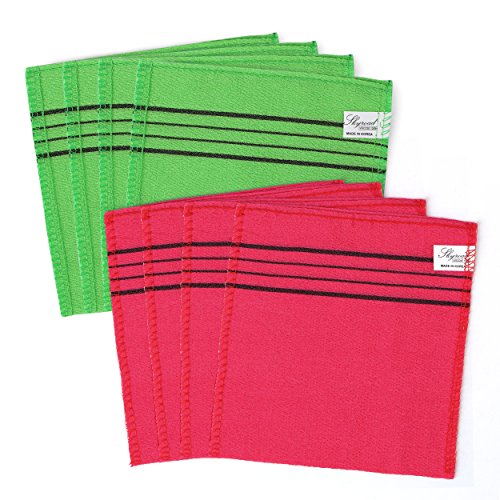 Eight items packaged (5.9in x 6.5in)(15cm x 16.5cm) each) 100% Viscose Rayon exfoliating scrub bath mitten.