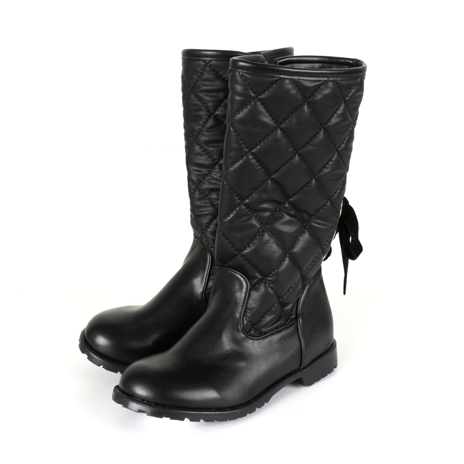 블랙컬러의 가죽과 퀼팅 레자 소재를 믹스하여 착용감이 좀 더 편안한 느낌을 주는 아이템입니다.뒤쪽에 리본으로 포인트를 주어 사랄스러운 느낌을 줄 수 있는 아이템입니다 원피스,스커트,스키니진 모두 코디가 용이합니다.